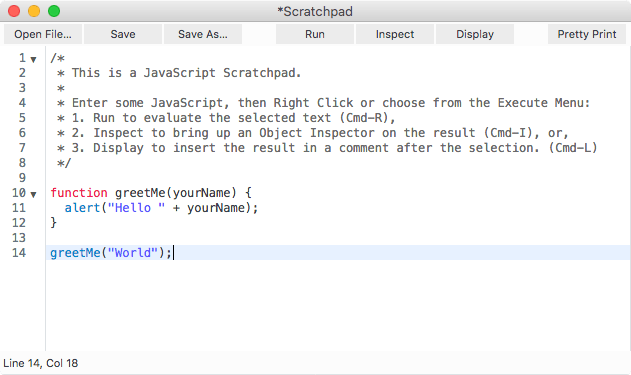 Web Console отлично подходит для выполнения одиночных строк JavaScript, но хотя вы можете выполнить и несколько строк, это не очень удобно, к тому же вы не можете сохранить ваш код, используя Web Console. Поэтому для более комплексных примеров Scratchpad является более подходящим инструментом.